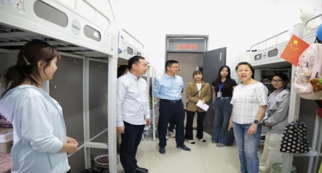 学院领导一行首先来到新十宿舍楼,慰问新入住的住楼辅导员姚远老师。张宏书记充分肯定其“与学生同吃同住”的工作模式,并强调:“住楼辅导员要筑牢宿舍安全防线,既要成为学生的成长导师,更要当好学生宿舍稳定的前哨兵。”姚远老师表示,将牢记学院嘱托,以饱满的热情和专业的服务,为学生成长成才保驾护航。随后,学院领导与老师们分别走访了纺织工程和服装设计两个专业的学生宿舍。学院领导与同学们促膝谈心,针对低年级学生,强调夯实专业基础、合理规划大学生活;针对毕业年级学生,鼓励大家做好毕业设计的同时,认真分析当前就业形势,做好积极准备,主动求职。