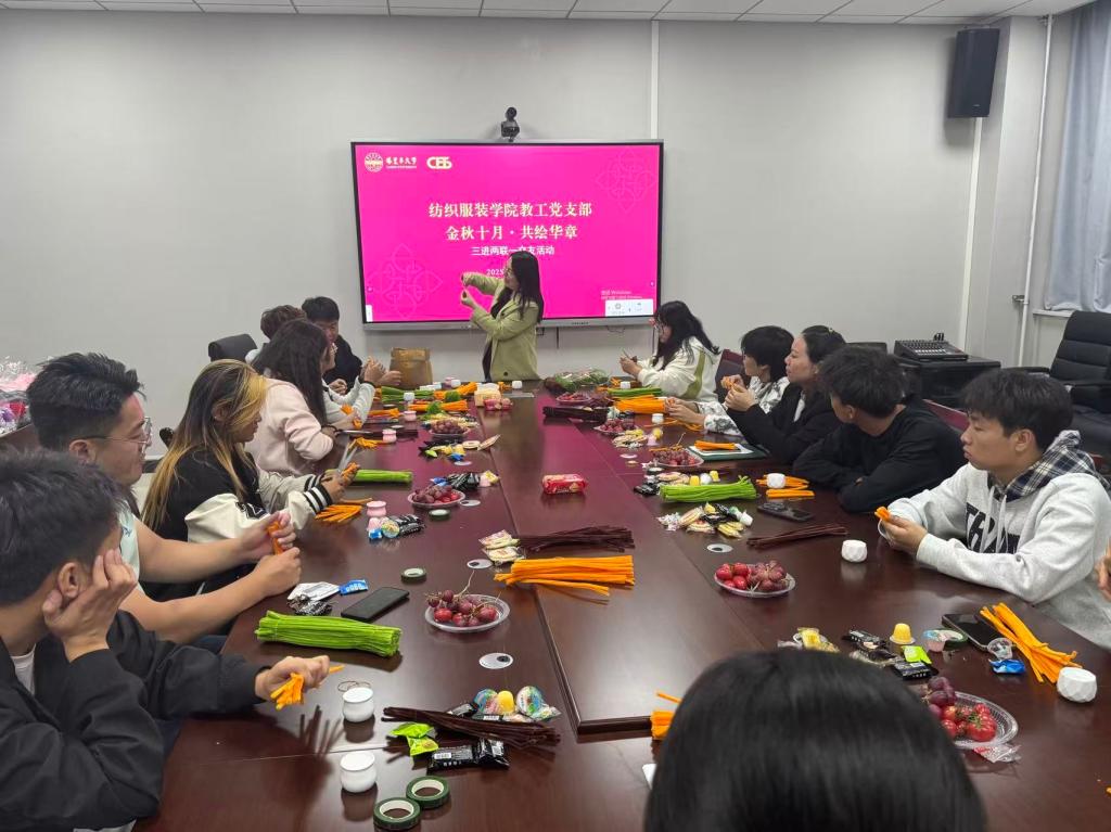 109日晚上,纺织服装学院教工党支部组织开展三进两联一交友手工制作太阳花主题活动。学院党委副书记袁海源以普通党员身份参加。党员干部和交友学生欢聚一堂、共话未来。