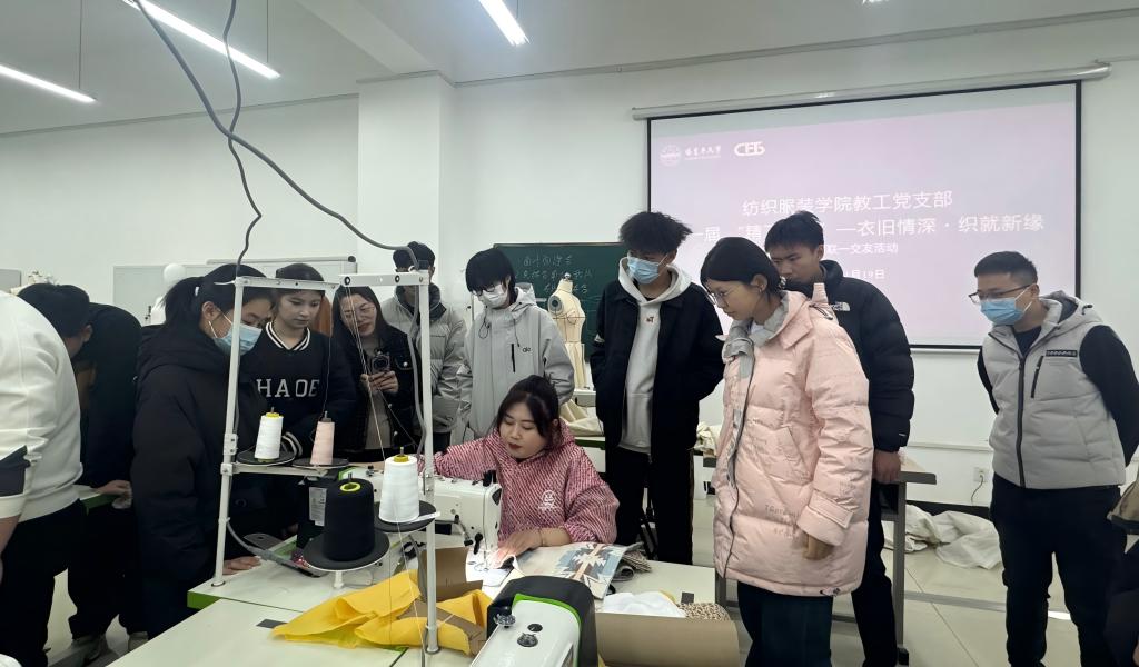 11月19日,纺织服装学院教工党支部结合主题党日,走进教室A207缝纫实验室,成功开展“精工织补 — 衣旧情深”三进两联一交友主题活动。院党委书记熊仁次以普通党员身份参加,教工党支部全体党员和交友学生共同体验手工创作的乐趣,凝聚组织力量。