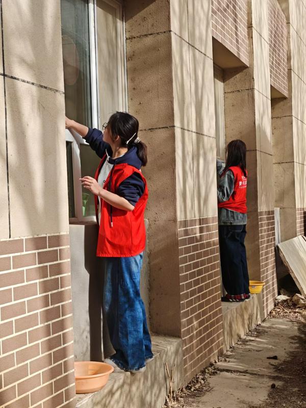 活动现场,志愿者们身着统一的红色志愿马甲,分工协作、干劲十足。大家手持抹布、水盆等清洁工具,仔细擦拭养老院的门窗玻璃、墙面扶手,不放过任何一处灰尘与污渍。从拧干抹布的细致动作,到擦拭门窗的专注神情,每一个细节都展现着青年志愿者们的耐心与热忱。经过一上午的辛勤劳作,养老院的门窗焕然一新,公共区域变得更加整洁明亮,为老人们营造了舒适清爽的生活环境。